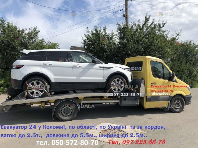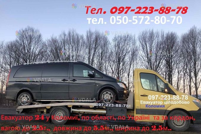 Евакуатор у Коломиї, по області, по Україні та за кордон, вагою до 2.5т., довжина до 5.5м., ширина до 2.5м.. ДЗВОНІТЬ : ТЕЛ../ VIBER, 050-572-80-70 РОМАН Приїду до Вас за викликом на місце поломки або аварії авто. Перевожу також негабаритні вантажі: торгові вагончики, прилавки, мафи, рекламні щити, тощо.