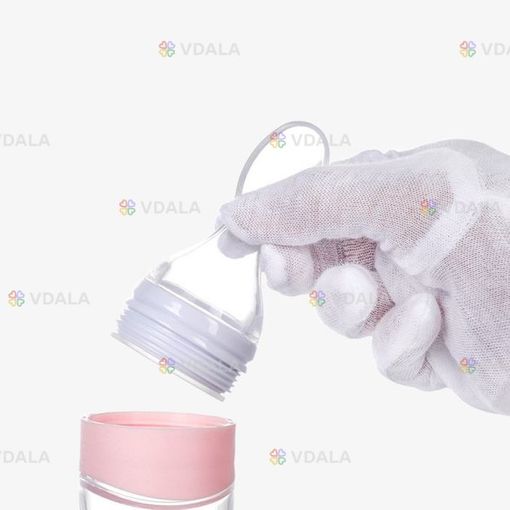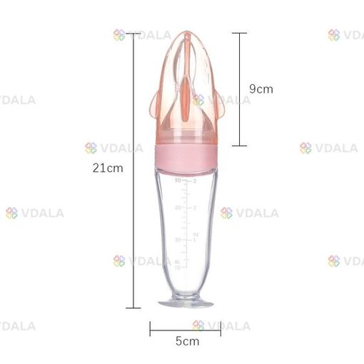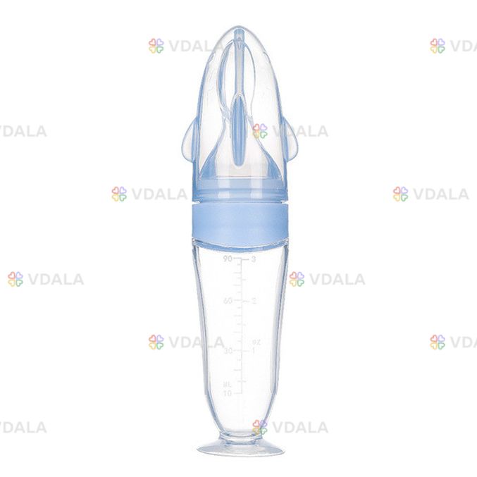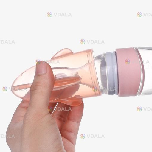 Бутылочка для кормления с ложечкой из силикона для первого прикорма, на нее одевается насадка с ложечкой на конце. В ложечке отверстие, через которое содержимое бутылочки выливается в ложку. Если не сдавливать бутылку, то выливается очень медленно, по капле.