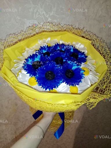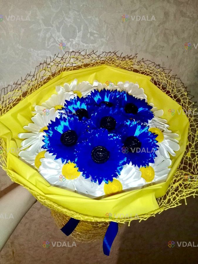 Букет з 18 квітів з атласної стрічки.