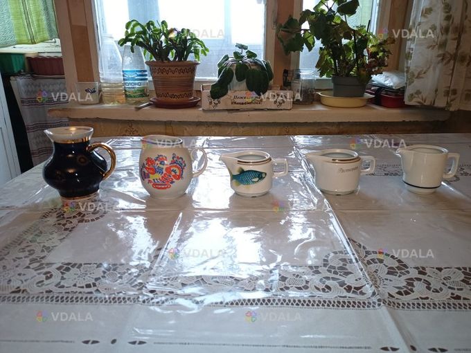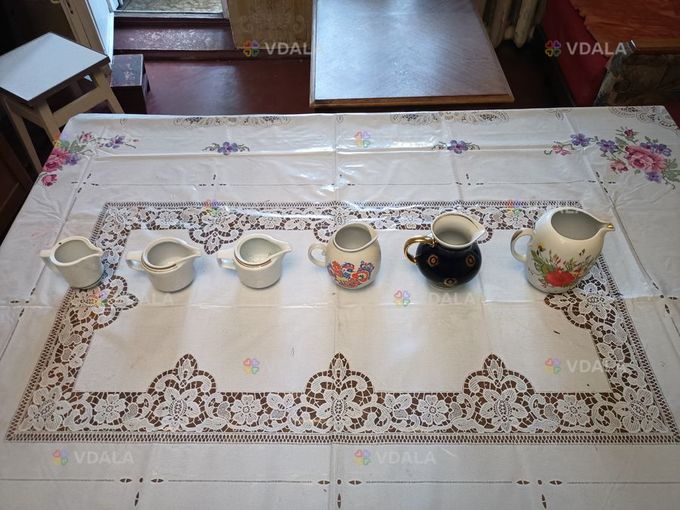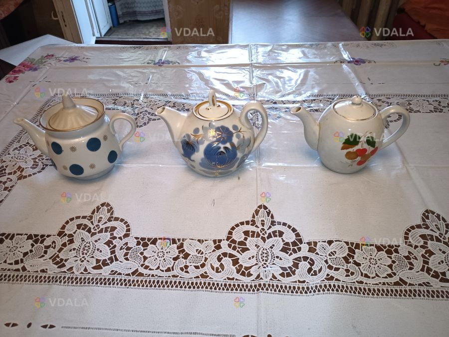 Предмети чайного посуду, складаються з трьох чайників та декілька молочників. Вироби прикрашені яскравими квітковими орнаментами в традиційному українському стилі. Посуд має ознаки використання, але перебуває у відмінному стані та готовий до подальшого використання.