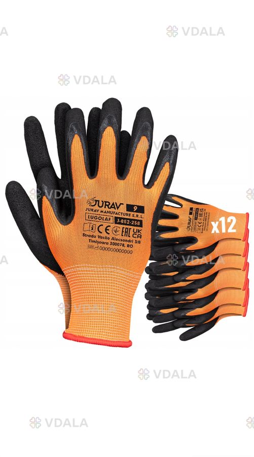 Рукавички захисні , частково покриті латексом, оранжево-чорні Jurav- L
