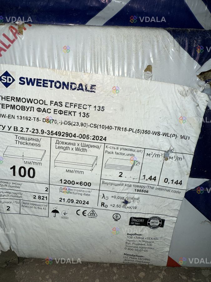 Залишки мінеральної вати sweetondale для утеплення, підійде для горища, стін та можливо фасадів, є різні розміри та товщини, але більше всього сотки характеристики якої зображені на фото