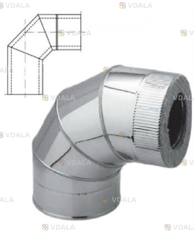 Колено 90° с теплоизоляцией нерж/оцинк для дымохода AISI 201 (0,8 мм)