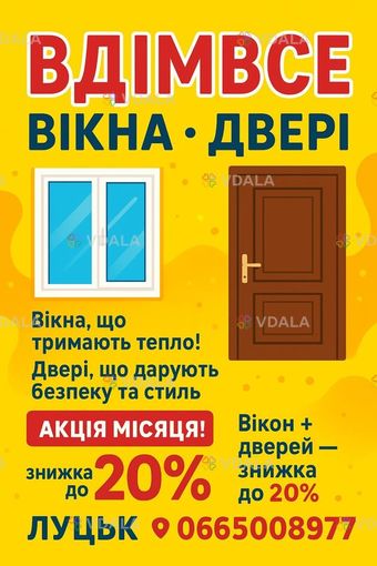 Пропонуємо металопластикові вікна (підвіконня відливи), вхідні двері, лоджії, балкони, різноманітні конструкції та прибудови від виробника. Ціни Вас приємно здивують. Якщо потрібно є заміри, доставка(по місту безкоштовна, окремо можлива по області), монтаж.