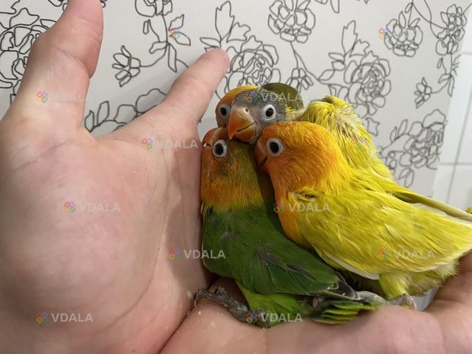 Попугайчики неразлучники разноцветные морфные.Малышам по 1,5 месяца. ВЫКОРМЫШИ, т. е. СОВЕРШЕННО РУЧНЫЕ