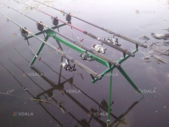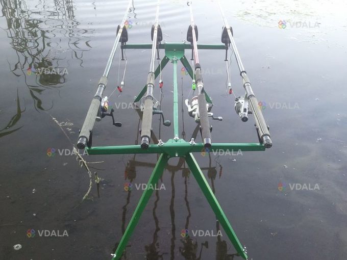 На відміну від пластмасових та алюмінієвих род подів, підставка род под на 4 вудилища - це якісний виріб з оцинкованого металу. Род под на 4 вудилища компактний та стійкий, міцно і надійно утримує ваші вудилища при сильному клюванні (регулюються кожна ніжка (опора) по висоті), роблячи вашу рибалку комфортніше незалежно від рельєфу та місця риболовлі (фабрично виробляються на території України).