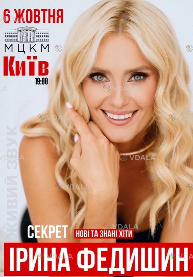 Очаровательная Ирина Федишин приглашает всех на большой концерт в Международном центре культуры и искусств! Вас ждут уже известные и новые хиты, теплая атмосфера и много приятных воспоминаний. Не пропустите самое музыкальное событие октября!
