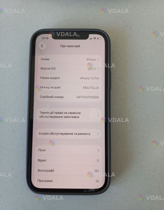 Продам iPhone 12 Pro 256Gb, задня кришка з тріщиною, фейс айді не працює після заміни екрану, нюансів більше немає, телефон працює як потрібно неверлок, можно оновлювати і скидати, з айклауду выйду. Торгу немає Ціна адекватна. Подивитися можно м Бориспільська 096 117 0606