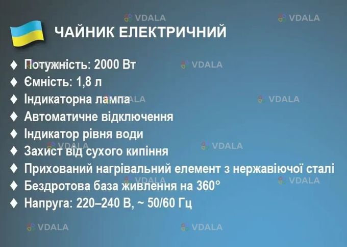 Чайник має прихований нагрівальний елемент, він більш довговічний, ніж спіраль, не схильний до утворення накипу. Для безпечного використання в чайнику передбачені функції автоматичного відключення за відсутності води або відкриття кришки, а також вбудований захист від перегріву. Стильний сучасний дизайн чайника добре впишеться в інтер’єр будь-якої кухні чи офісу!