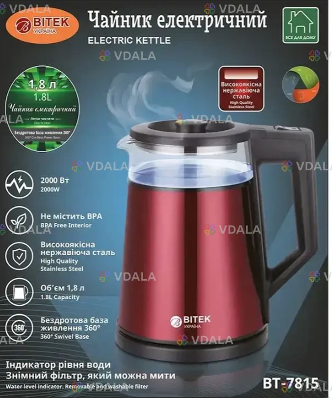 Чайник електричний 1,8л 2000Вт BITEK BT-7815