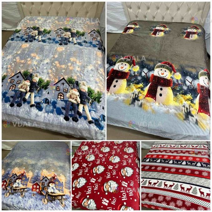 Затишний новорічний плед в подарунковому пакеті. Виготовлений з приємного на дотик матеріалу, прикрашений зимовими малюнками - сніговиками, будиночками, сніжинками. Ідеальний подарунок на Новий рік для створення святкового настрою вдома.