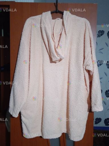 Махровий халат-накидка персикового кольору, з капюшоном і рукавами, без дефектів. Ширина 64 см, довжина 78 см. Не синтетика.