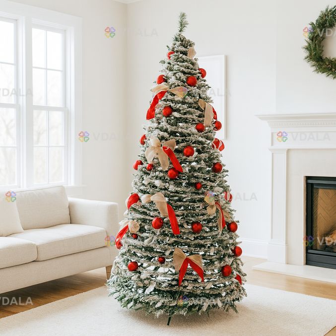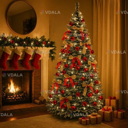 Раскладная искусственная елка 1,9м с LED гирляндой и украшениями, от сети / Новогодняя елка / Елка с игрушками