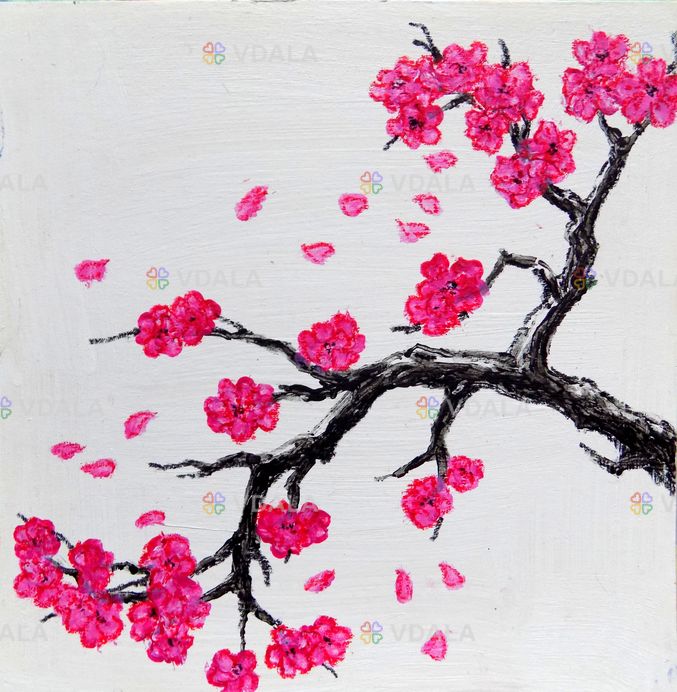 Картина - миниатюра *Ветка сакуры*, акрил, картон, 20*20 см