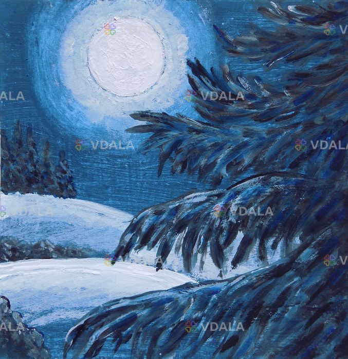 Картина - миниатюра *Зимняя ночь*. Акрил, картон, 20*20 см