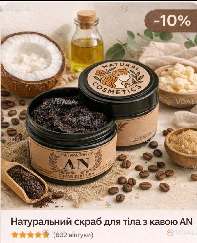 Кавовий скраб це натуральний косметичний засіб на основі мелених зерен, масла ШІ та олії мигдалю, призначений для глибокого очищення, та живлення шкіри. Він ефективно бореться з целюлітом, розтяжками та покращує кровообіг.