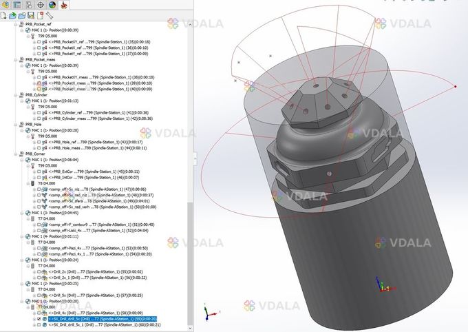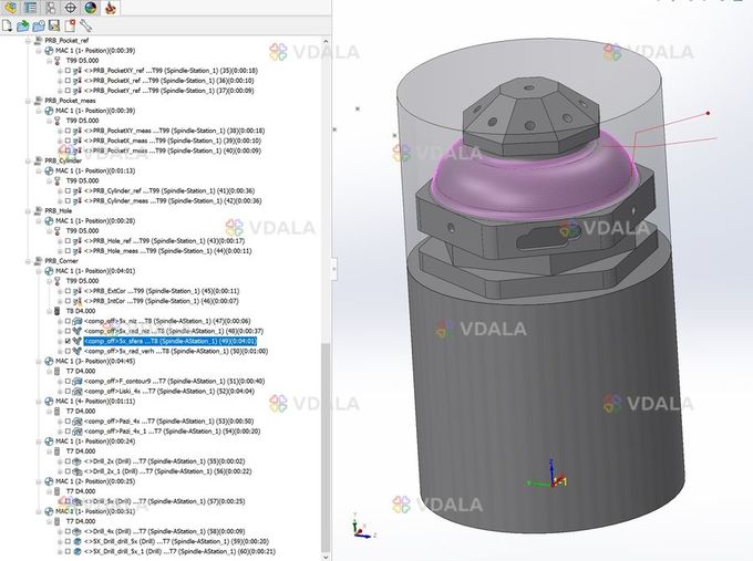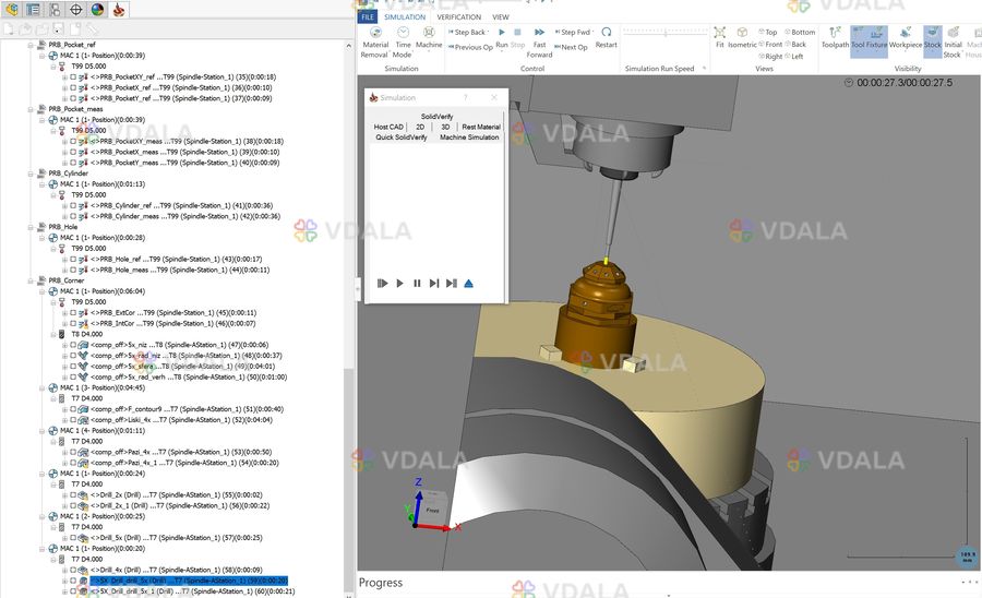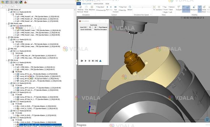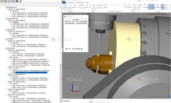 - машинна сімуляція Machsim для контроля зіткнень (найважливо для багатоосьових верстатів)