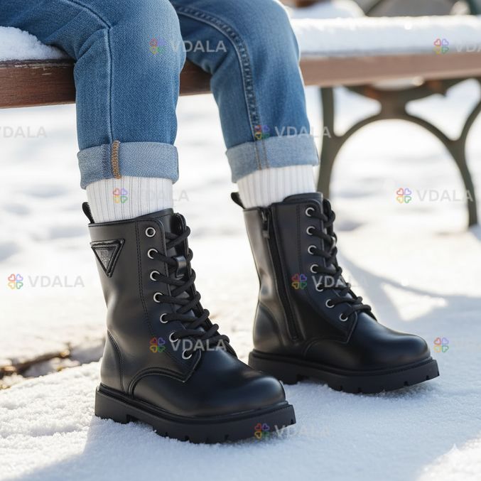 Зимняя детская обувь, ботиночки на девочку, сапоги на девочек, черные на замочке. Размер: 28-30
