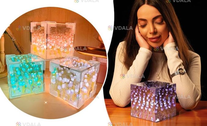 Светодиодный ночник Бесконечные тюльпаны в кубе