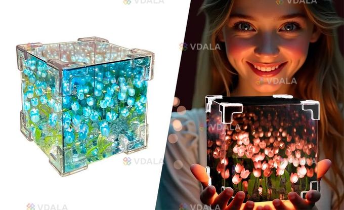 Ощутите волшебство в каждом уголке вашего дома с зеркальным ночником-светильником 3D LED Бесконечные тюльпаны в кубе. Этот невероятно красивый и оригинальный ночник погрузит вас в атмосферу загадочности и уюта.