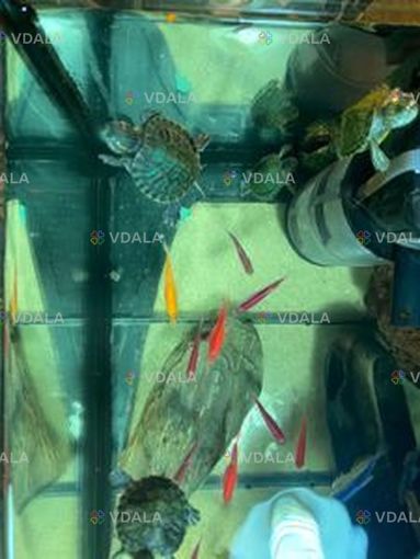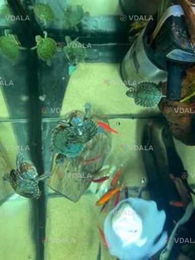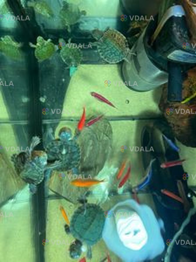 Красноухая черепаха. В продаже красноухие черепахи очень выносливая и хорошо подходят начинающим. Возраст - от 2 месяцев. Цена зависит от размера. Домашняя черепаха может жить до 40 лет. Но важно помнить, что черепахи нуждаются в воде и в суше (берег), на которой должно быть тепло и куда должны попадать УФ-лучи. При этом большую часть времени они проводят в воде, которая должна быть чистой, теплой и регулярно меняться. Черепаха всеядная, питается разнообразными видами корма. Разнообразие важно, так как поддерживает здоровье черепахи.