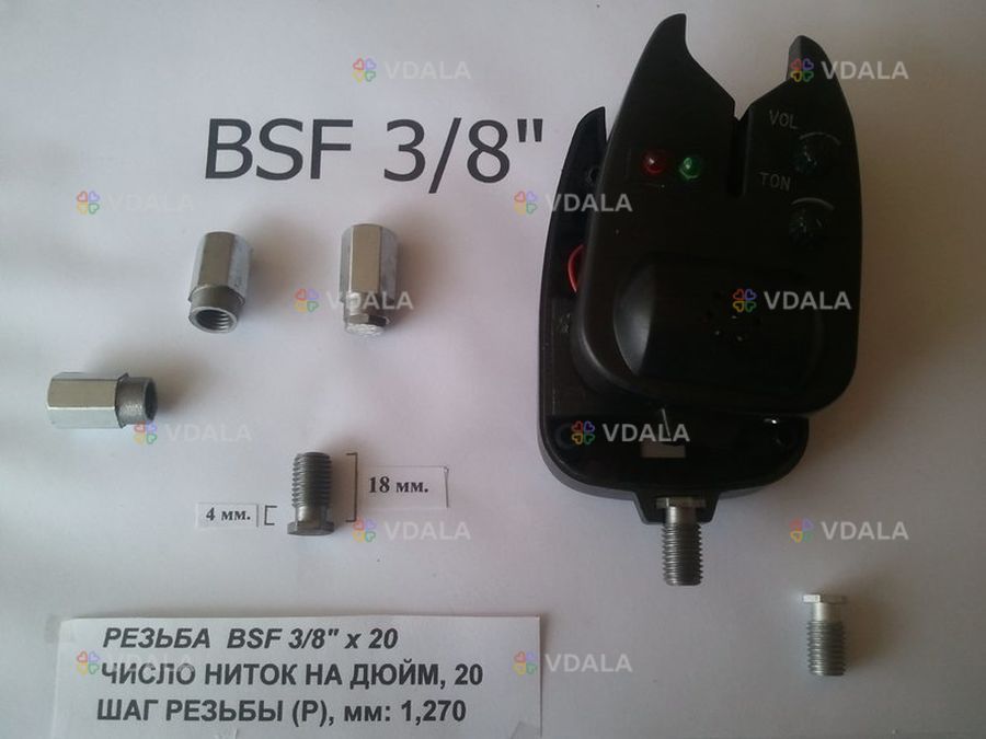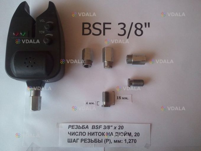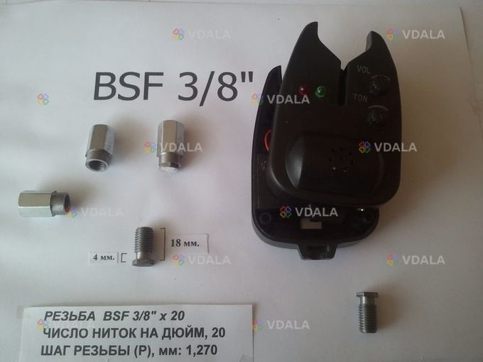 ПРАЦЮЄМО! ТОВАР Є В НАЯВНОСТІ! Продаю різьбові наконечники для сигналізаторів клювання, саме та частина яка вкручується в Род Под та фідерні триноги. Ця частина найчастіше зношується в сигналізаторі через низьку якість металу. Різьбові наконечники, виготовлені з гарної якості сталі, служать довго. Різьба нарізана відповідно до європейських стандартів (діаметром та кроком різьби), саме той стандарт, який використовується всіма виробниками сигналізаторів клювання та рогачів. Діаметр різьблення (d1), мм.: 9,53 Число ниток на дюйм, мм.: 20 Крок різьблення (Р), мм.: 1,270 Все легко замінюється, відкрутивши 4 шурупи, поміняти різьбовий наконечник (все як на фото). Різьбовий наконечник має розміри: Довжина із капелюшком – 20 мм. Довжина різьби – 14 мм. Діаметр різьби - BSF 3/8" х 20 (витків на дюйм) Довжина кромки – 4 мм. Діаметр кромки – 7 мм. Товщина шестигранного капелюшка – 2 мм. На цю модель сигналізатора та на інші моделі різьбовий наконечник ідеально підходить (все як на фото). Враховуючи, що різьбові наконечники різних виробників можуть мати невеликі особливості (наприклад, у товщині капелюшка або в діаметрі кромки), спочатку різьбовий наконечник можна підігнати саме для вашого сигналізатора звичайним напилком в домашніх умовах. Мінімальне замовлення від 4 штук. Відправляємо в будь-який регіон новою поштою, укрпоштою та іншими кур'єрськими службами (можлива післяплата-наложений платіж). Місцезнаходження: Дніпро - Кам’янське. Моб. +38-067-982-09-39