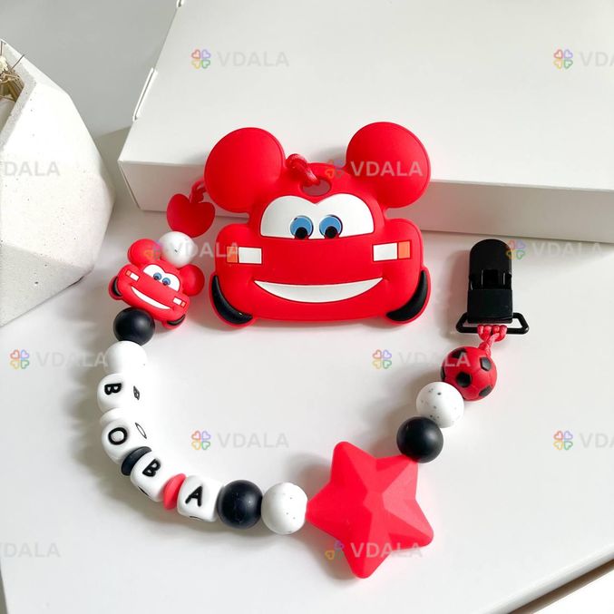 Именной силиконовый грызунок , Машинка Микки