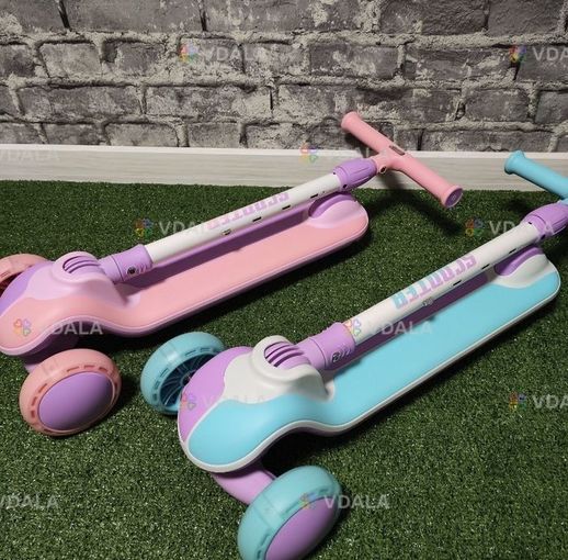Яскравий триколісний дитячий самокат у ніжних пастельних кольорах – ідеальний варіант для маленьких райдерів.