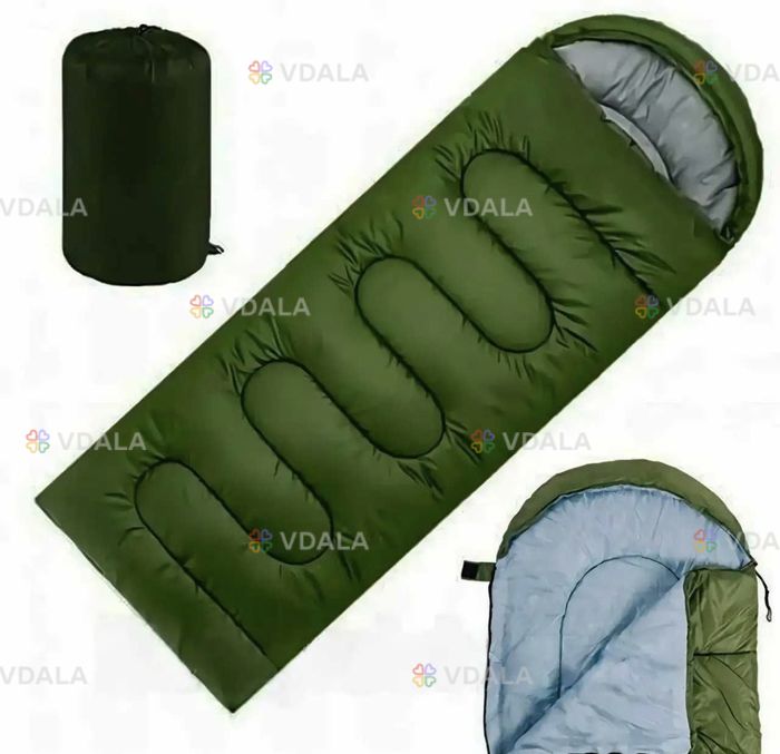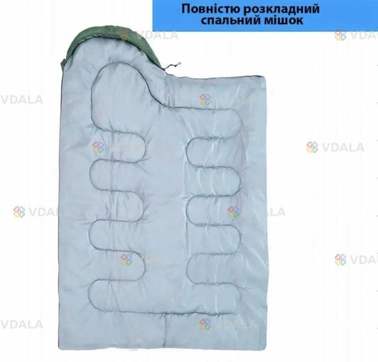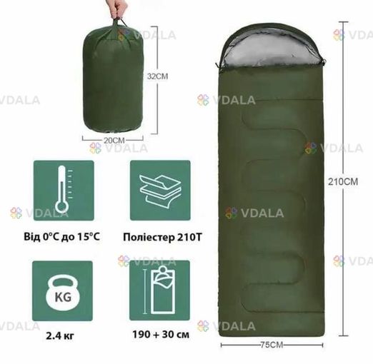 Широкий утепленный спальный мешок, туристический спальник хаки до -15 °C, 900г/м.кв, размер 210х75 см