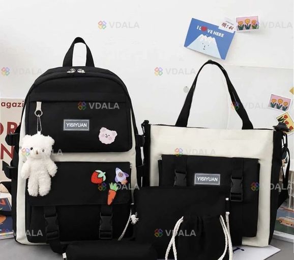 Рюкзак школьный модный 5 в 1 + брелок Медвежонок роспродажа