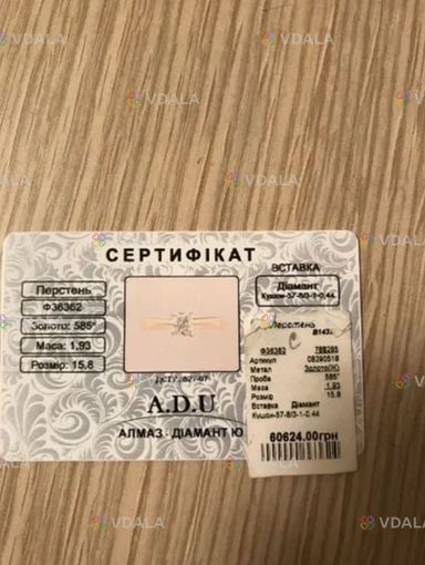 Кольцо с бриллиантом 0,44 ct -отличный подарок!