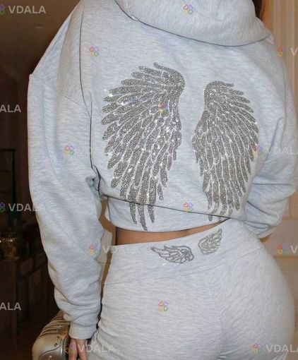 Стильний комбінований костюм з акцентними крилами на спині зі страз. Речі, які можна носити окремо - обʼємне худі та штанці по фігурі. Приємна мʼяка тканина.+380955966024