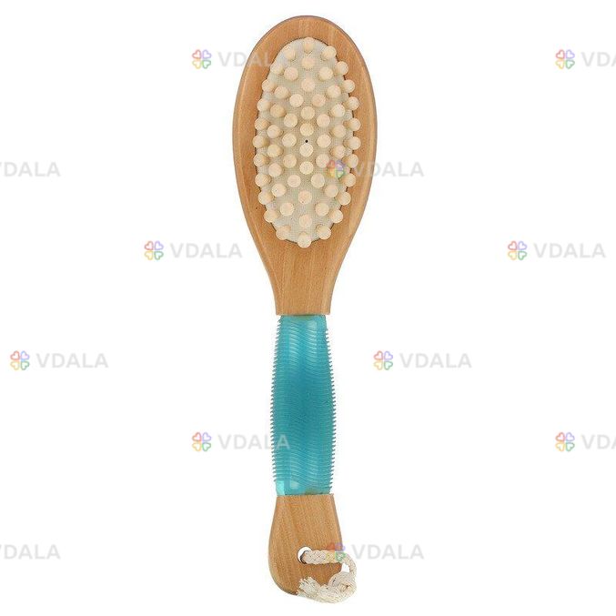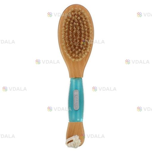 Щетка двойного назначения, имеет щетинки с обоих сторон и эргономичную ручку. Подушечка из массажных шариков расслабляет напряженные мышцы и улучшает кровообращение, а плюшевое покрытие с полуэластичной щетиной хорошо полирует кожу.