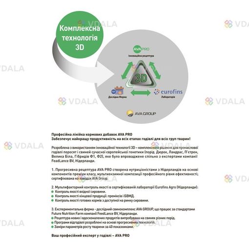 Бмвд добавка для свиней от 12-110 кг универсальний AVA PRO Complex SGF. Старт, Гровер, Финиш. Фасовка 25 кг