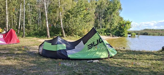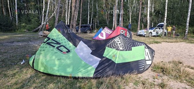 Кайт в гарному стані без ремонтів на тканині(декілька наліпок від проколів, рваних частин нема, весь цілий). Повністю за змінені усі клапани на центральном та поперечному баллоні(цей недолік виробника виправлепа. Комплект кайт+рюкзак, за домовленісю до укомплектую планкою(оригінальна планка озоне в гарному стані 250$)