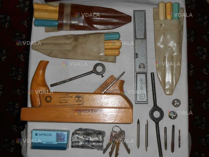 Продається рівень побутовий УБ-230, рубанок, циліндровий механізм з ключами, плашкокотримачи, плашки, мітчики, набори викруток.