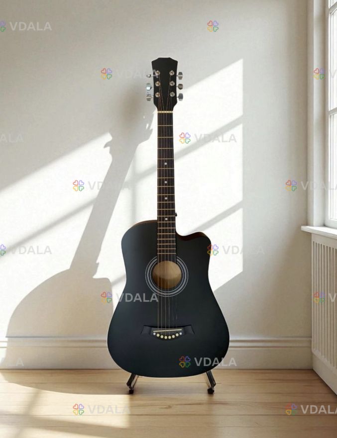 6-ти струнна акустична гітара. Ідеальний вибір для тих, хто тільки починає свій шлях у світі музики! Ця акустична гітара поєднує в собі класичний дизайн, приємне звучання та комфортну гру. Корпус виготовлений із якісної деревини, яка забезпечує чисте, насичене звучання, а металеві струни додають яскравості та сили кожній ноті.