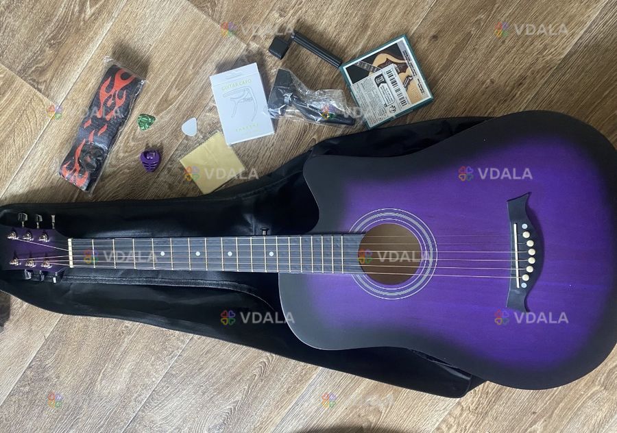 Продам акустичну гітару з приємним дзвінким звучанням. Виглядає стильно — рідкісний фіолетовий колір.