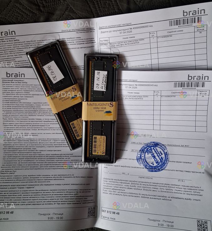 заміна в брейні нові 2ві планки 16 гб 2400 гарантія 3 роки