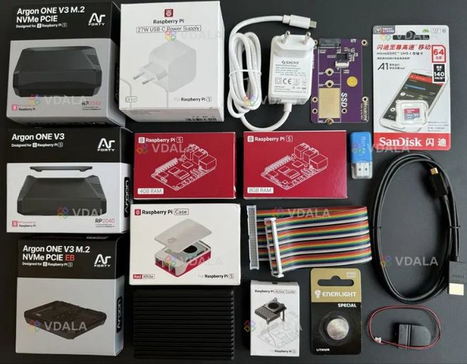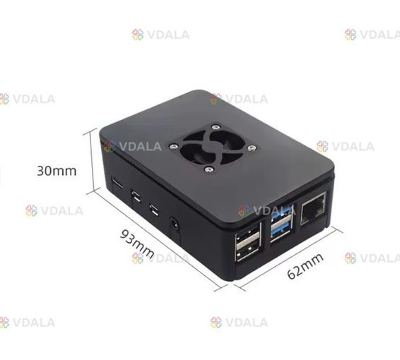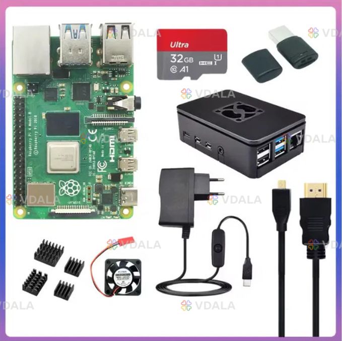 В KIT входить корпус з кулером, блок живлення 5V 3A, радіатори з термопрокладками, HDMI to micro HDMI, картрідер, Micro SD 32Gb