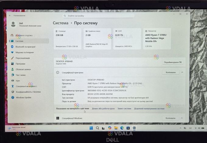 - Ліцензійна система Windows 11 Pro (ключ вшит в біос)