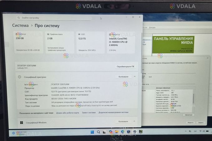 Intel Core i5-10400H, 12 GB RAM, 256Gb SSD, nVidia GeForce MX250 2Gb, 15.6" FHD IPS, вага 1.89 кг