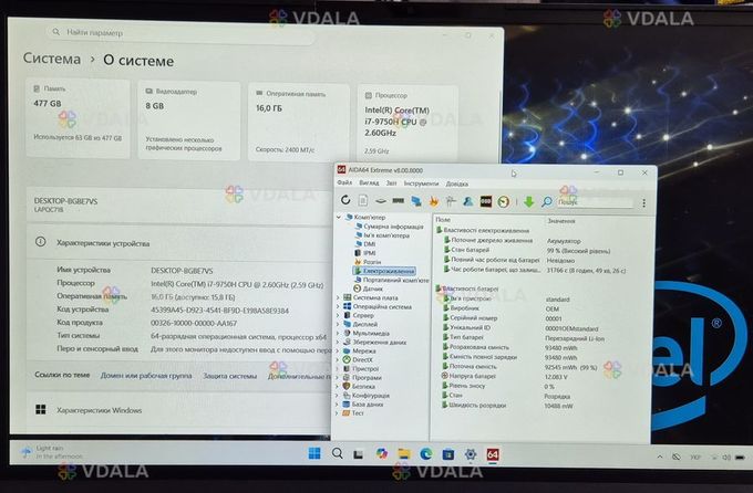 - Процесор 6-ядерний 12-ти потоковий Intel Core i7-9750H (2,6-4,5GHz)