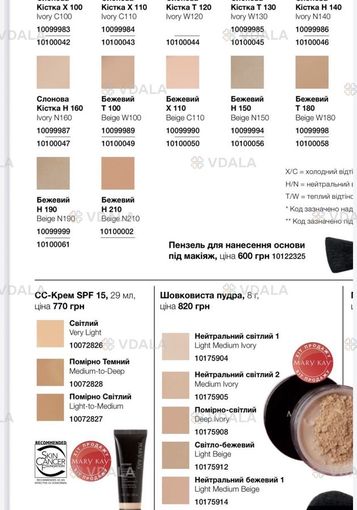 В наявності тональні засоби Мері Кей (тональні креми, СС-креми). Фото для прикладу, відтінків багато (є фото з каталогу з усіма відтінками).
