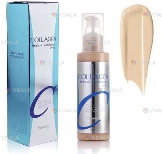 Тональний поживний крем для шкіри обличчя з колагеном ENOUGH COLLAGEN Moisture Foundation — це багатофункціональний засіб, створений для того, щоб забезпечити вашій шкірі ідеальне покриття, зволоження та захист. Містить рівеь захисту SPF 15, який допомагає захистити шкіру від шкідливого впливу ультрафіолетових променів, запобігаючи передчасному старінню й пігментації. Гідролізований колаген у складі крему покращує еластичність шкіри, роблячи її пружнішою та гладкішою. Легка текстура крему рівномірно розподіляється, приховуючи недосконалості та створюючи природний, свіжий вигляд без ефекту маски.