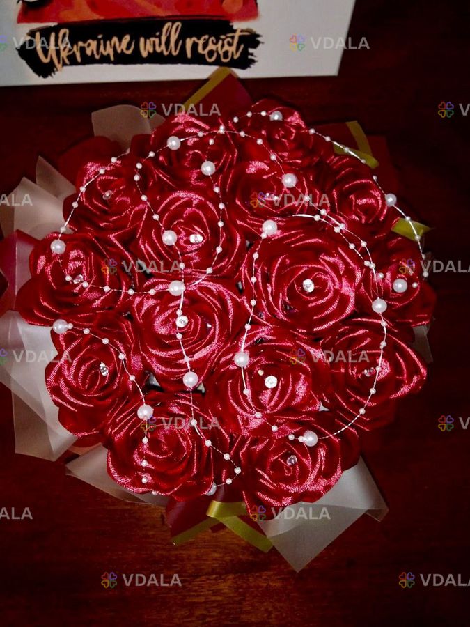 Композиція з 15 троянд ручної роботи.