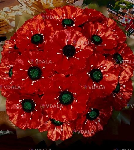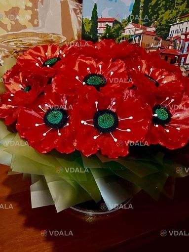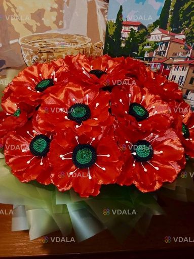 Букет з 20 маків з атласної стрічки.