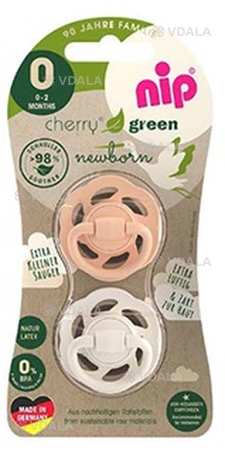 Пустышка круглая латекс Вишенка NIP Зеленая Серия для новорожденных Персиковый/Крем от 0 до 2 месяцев 2 шт