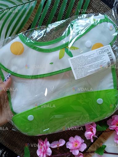 - слинявчик легко фіксується на шиї завдяки кнопочкам;