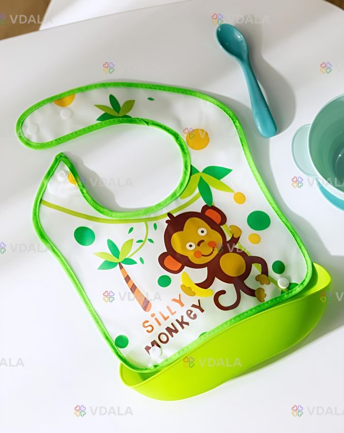 - нагрудник має спеціальне знімне поглиблення, яке запобігає падінню їжі на підлогу;